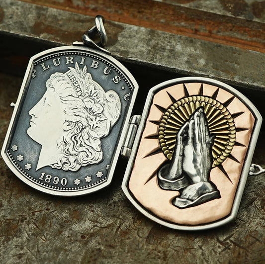 Mongolia Jewelry - Praying Hands Morgan Coin Necklace