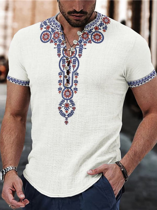 Mongolian Clothing-Summer new simple short-sleeved shirt