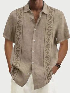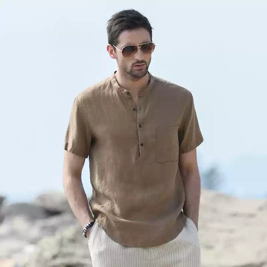 Mongolian Clothing-Soft and breathable short-sleeved linen shirt