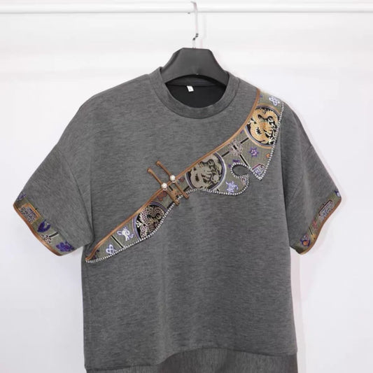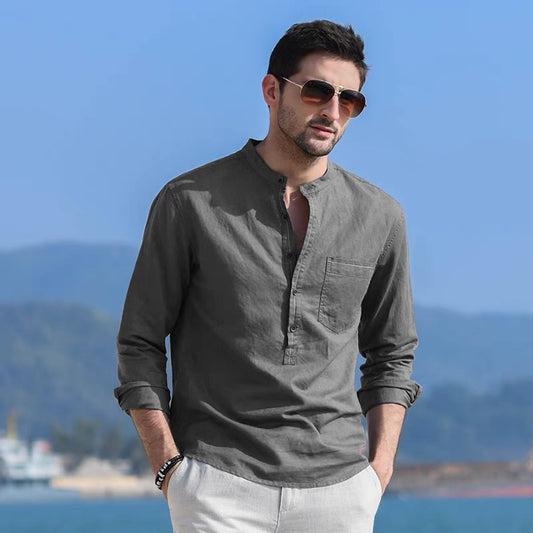 Mongolian Clothing- Stand Collar Cotton and Linen Shirt