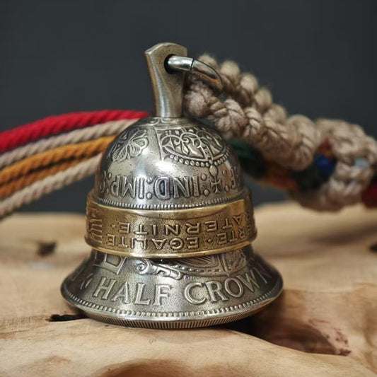 Mongolian Pendant - Vintage British Coin Bell ,Pendant, Charm or Keychain