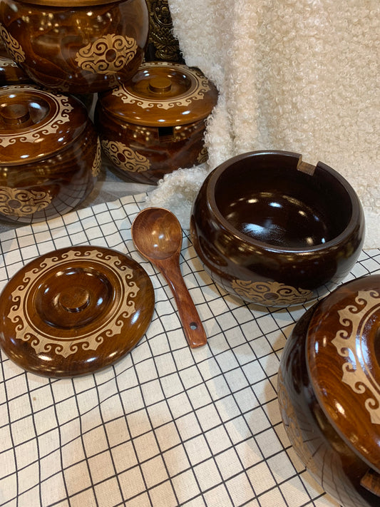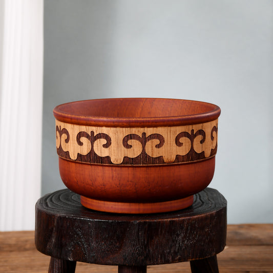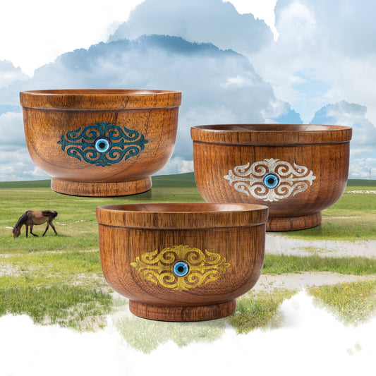Mongolian Wooden Bowl - Snow Lotus Flower